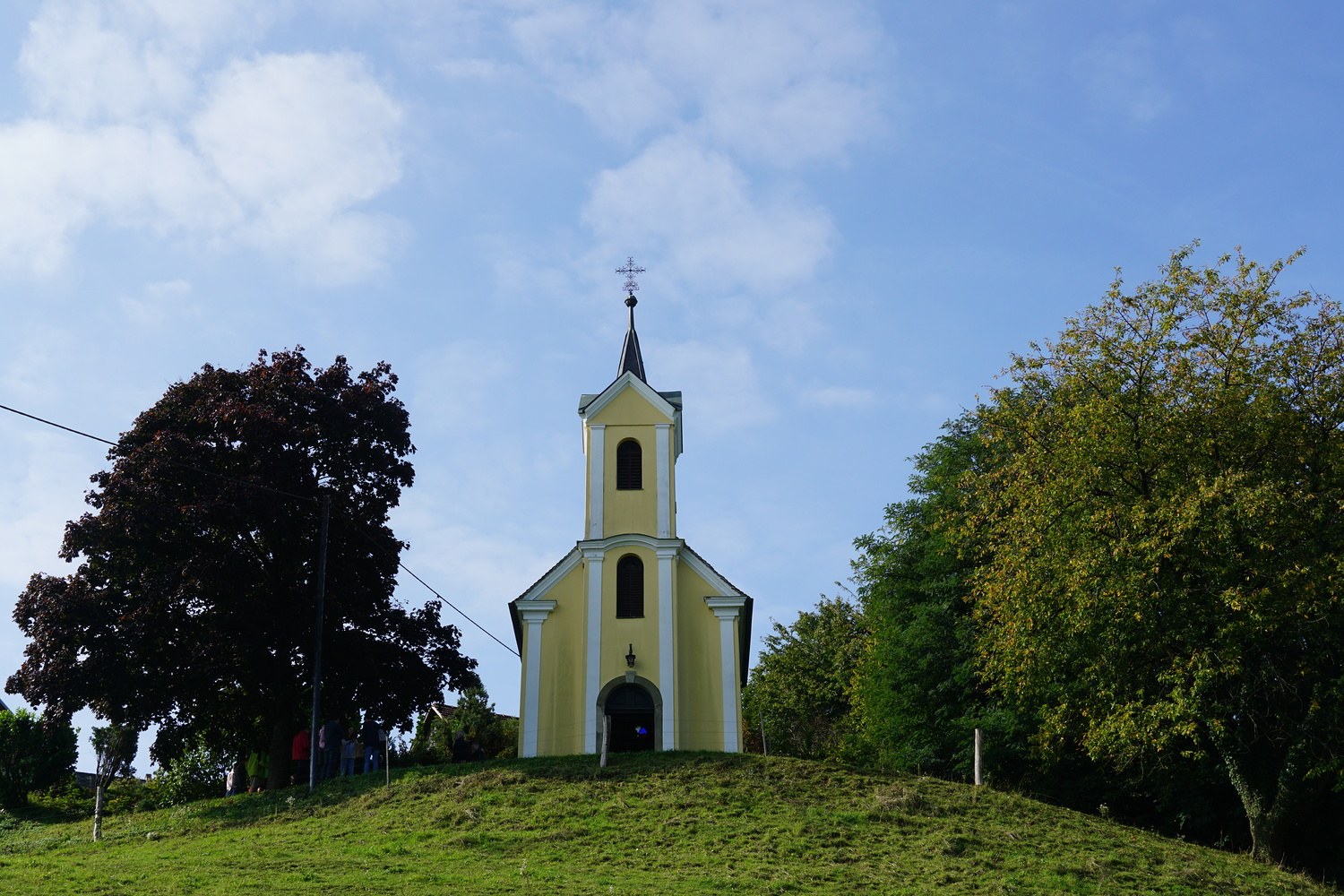 Wir begannen vor der Hl. Geist-Kapelle bei Fehring mit einer Schöpfungs-Andacht zusammen mit Pfarrer Christoph Wiesler.