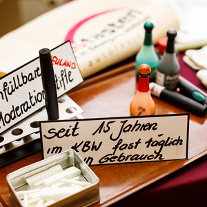 Einige Kolleginnen stellten persönlich nachhaltige und bewährte Produkte vor: nachfüllbare Textmarker (seit 15 Jahren im KBW im Verwendung!), den Locher ohne Metallklammern, das Fairphone (reparierfähiges Handy) und, last but not least, viele Tipps für eine gesunde und ökologische Sitzungsverpflegung (Liste im Anhang).