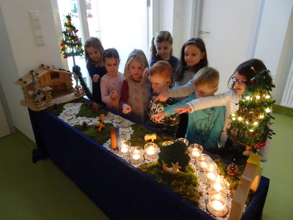 In dieser besinnlichen Zeit wird gemeinsam mit den Kindern gebacken, Geschenke gebastelt und Maria und Josef sind auf dem Weg nach bethlehem. Es herrscht eine heimelige Atmosphäre im Kindergarten. Jedes Kind darf im Advent einmal Adventkind sein.