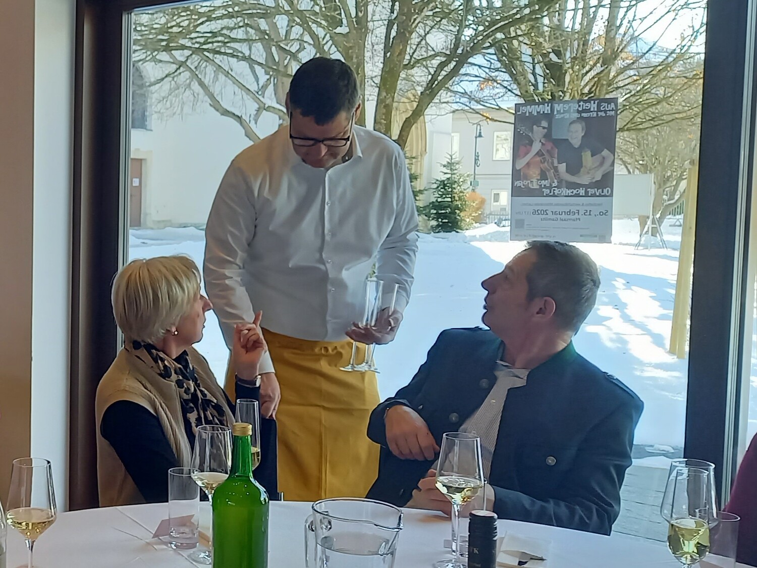 Gleich zur Begrüßung wurde mit einem Gläschen Sekt auf die gute Zusammenarbeit angestoßen und bei einer stimmungsvollen steirischen Hintergrundmusik ließ es sich gleich angeregt plaudern. Pfarrer Schneeflock betonte in seiner Ansprache, wie wichtig "JEDER, JEMAND UND IRGENDJEMAND" ist und bemühte sich, alle Anwesenden namentlich hervor zu heben.