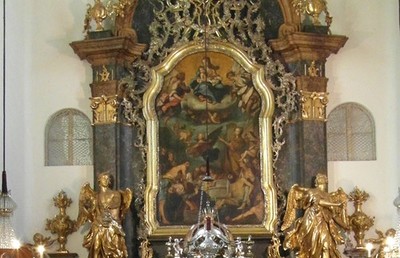 Das laut Signatur von Giovanni Pietro de Pomis 1611 geschaffene Gemälde befand sich ursprünglich nicht am Hochaltar, sondern hing zunächst in einer Kapelle oder an einem Seitenaltar. Erst um 1700 wurde es an dieser prominenten Stelle der Kirche präsentiert, da das Bild die Wallfahrer in Scharen anlockte.