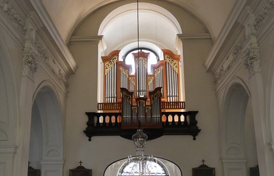 Auf der Empore befindet sich die 1983 von der Firma Rieger aus Schwarzach/Vorarlberg erbaute Orgel. Das Werk verfügt über 25 Register auf zwei Manualen und Pedal. Der siebenteilige Prospekt des Hauptwerkes ist im oberen Bereich mit vergoldeten Schleierbrettern versehen, ebenso der fünfteilige Prospekt des Brüstungspositives.