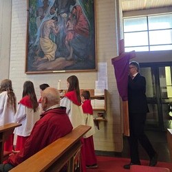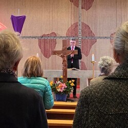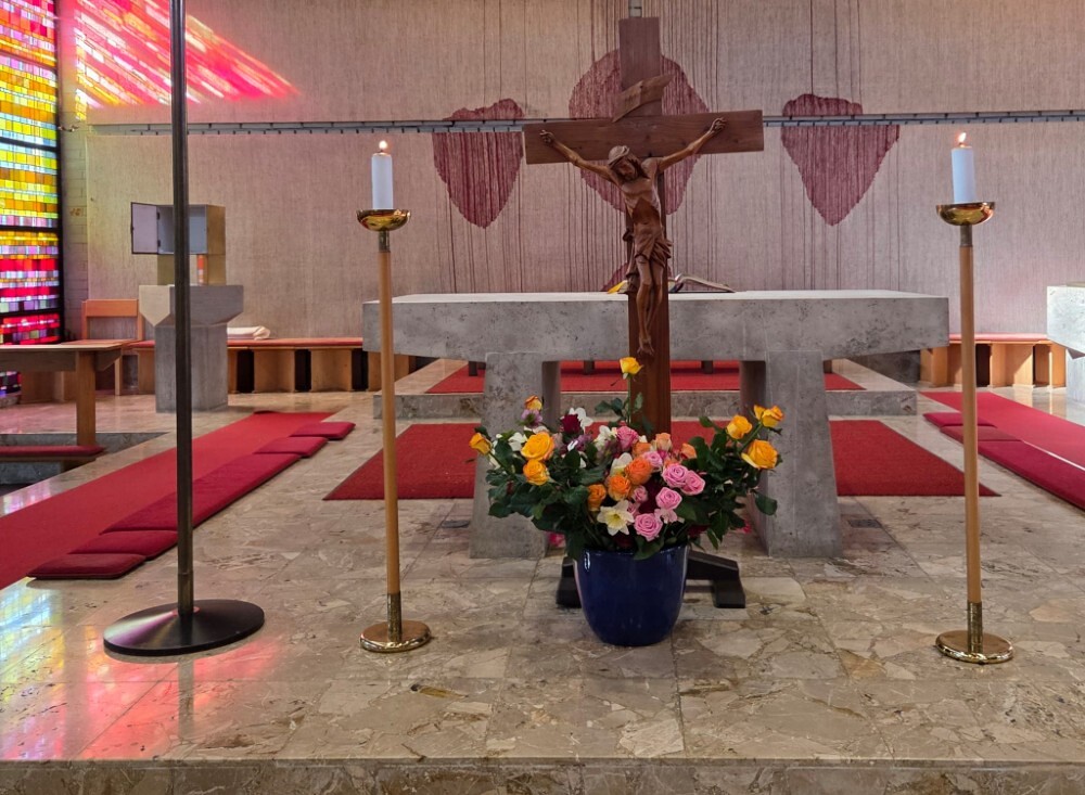 Der Karfreitag wurde in Stille vor dem leergeräumten Altar mit den Zeichenhandlungen der Kreuzverehrung, den großen Fürbitten und der Grablegung begangen. Gestaltet wurde die liturgische Feier von Thomas Possert und einem Ensemble rund um Siegfried Kager.