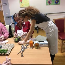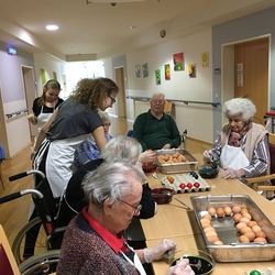 Die Gruppe Teufel hat im Waldhof mit den Senioren gebastelt und gebacken.