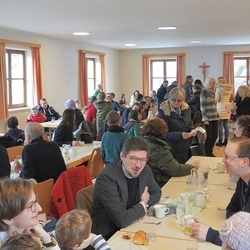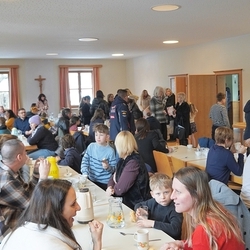 In dieser besonderen Stimmung fand man sich nach der heiligen Messe gerne im Pfarrheim zum Pfarrkaffee ein, den ein kleines Team liebevoll vorbereitet hatte. Zuvor konnte man anlässlich des Sonntags der Weltkirche - von den Minis angeboten - noch Schokopralinen kaufen, um sich und anderen Gutes zu tun!