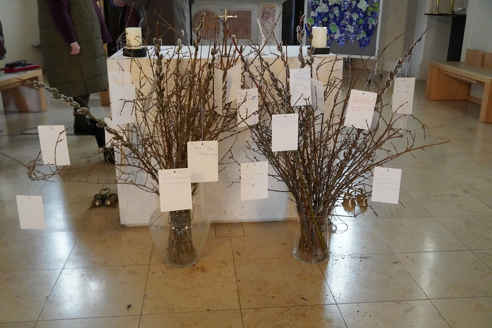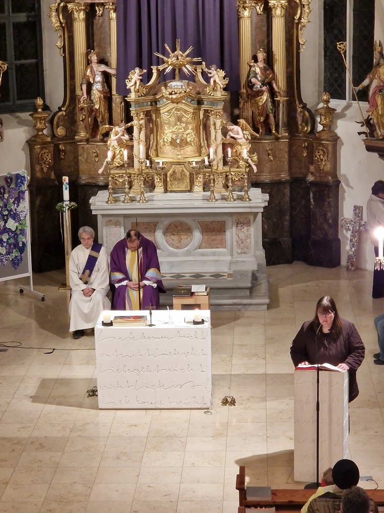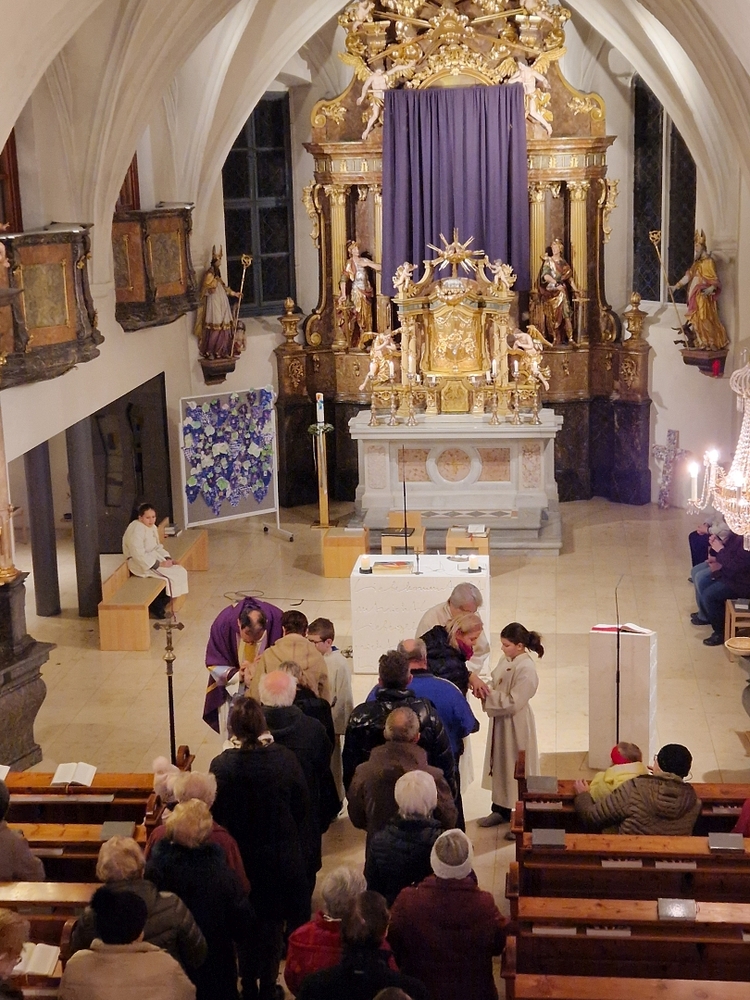 Bei der Wort-Gottes-Feier am Sonntag sprach WGF-Leiterin Christa Habith in Bezug auf Jesaja von der uralten Sehnsucht der Menschen nach Frieden und Gerechtigkeit. Nur durch Umkehr, siehe Johannes der Täufer (Mt 3, 1-12), kann Veränderung geschehen und Gott in uns ankommen. Umkehren heißt Haltungen überdenken, Altes verlassen und die Herzen öffnen.