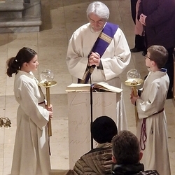 Nach dem feierlichen Einzug betonte Vikar Norbert in der Begrüßung, wie schön es ist, dass Johannes neben vielen anderen ehrenamtlichen Tätigkeiten (Kantor, Organist …) nun auch den Dienst des Diakons ausüben wird.