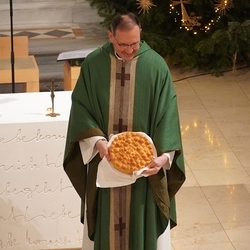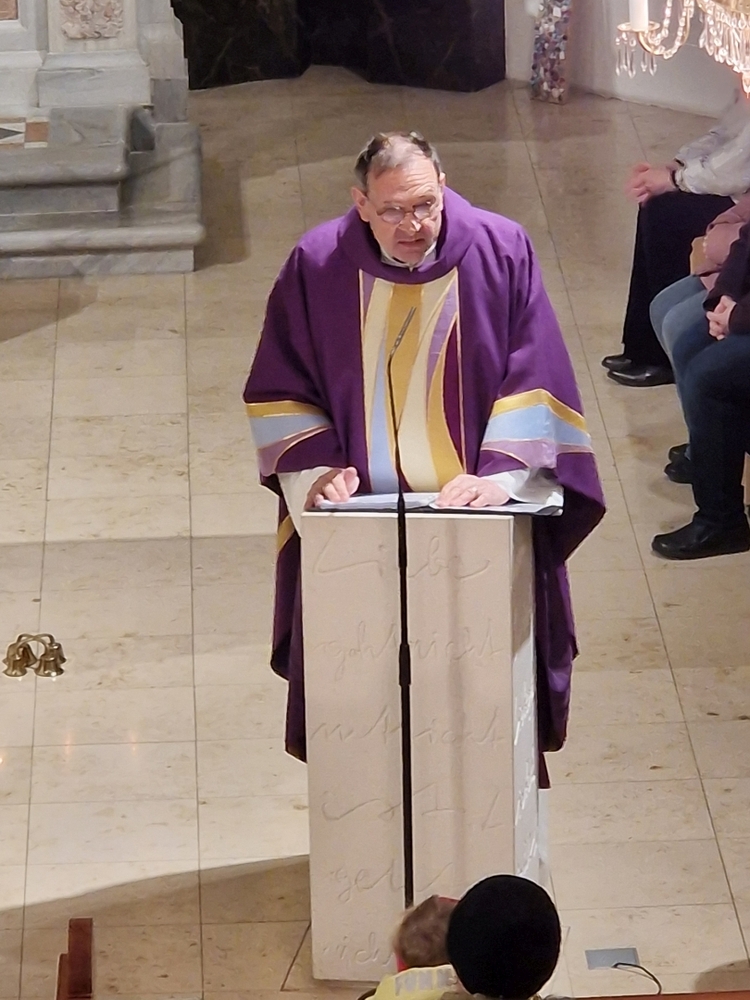 Gedanklich führte uns Vikar Norbert auf die Spur, was der Vers „Seid also wachsam!“ aus dem Evangelium (Mt 24, 42) für uns heute heißen kann - und wie die Vision des Jesaja, dass Schwerter zu Pflugscharen und Lanzen zu Winzermessern umgeschmiedet werden (Jes 2, 4), in unserer Welt ein Stück weit Wirklichkeit werden könnte. Es kann nur gelingen, wenn „Menschen ihr Lebensnavi in Jesus verankern“, so Vikar N. Glaser in seiner Predigt.
