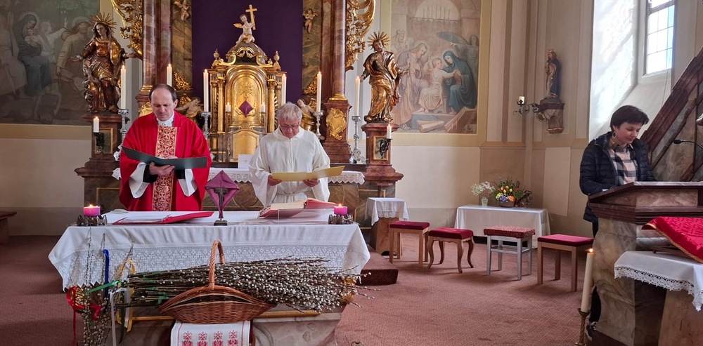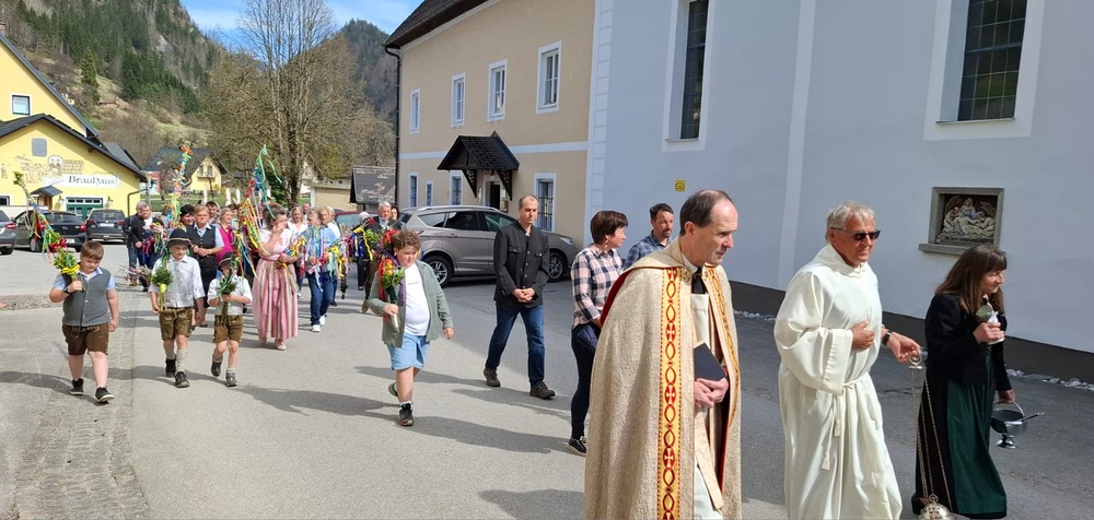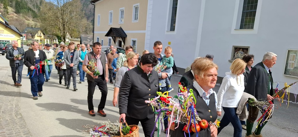 Die Karwoche, auch Heilige Woche genannt, beginnt mit den Palmsonntag. In der Karwoche stehen das Leiden, das Sterben und die Auferstehung von Jesus im Mittelpunkt. In Gams wurde bereits am Palmsamstagnachmittag bei herrlichen Frühlingswetter die Palmweihe von Pater Engelbert und Wortgottesdienstleiter Franz Ließ abgehalten. Sehr viele Besucher und Kinder mit ihren selbstgebunden und schön geschmückten Palmbuschen wohnten der Palmweihe bei. Die anschließende Prozession von der Volksschule zur Kirche wurde von der Musikkapelle Gams musikalisch begleitet. Die Palmbuschen sollen an Jesus Christus erinnern und das Haus vor Blitz und Feuer schützen.