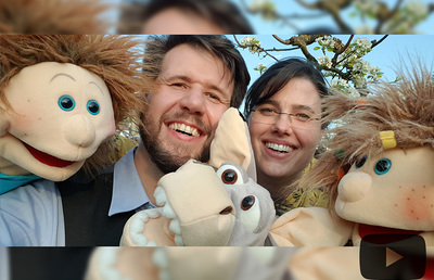 Barbara und Günter gestalten gemeinsam mit Handpuppe Martin eine Kinderkreuzweg-Andacht.